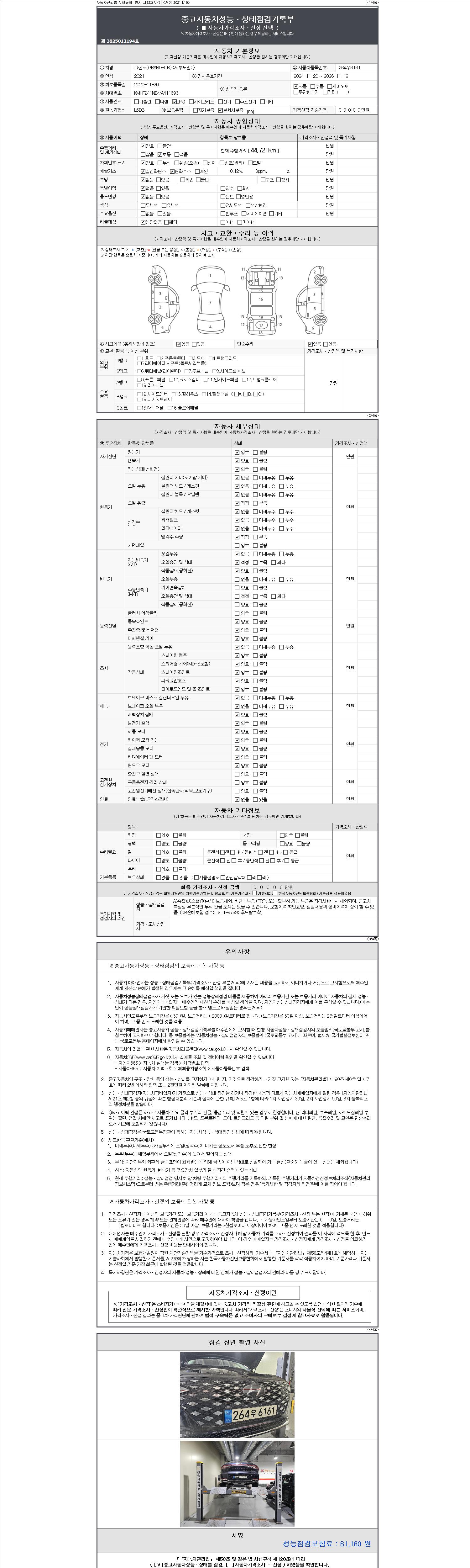 | 주행거리 | 44,721 km | 차량번호 | 264우6161 |