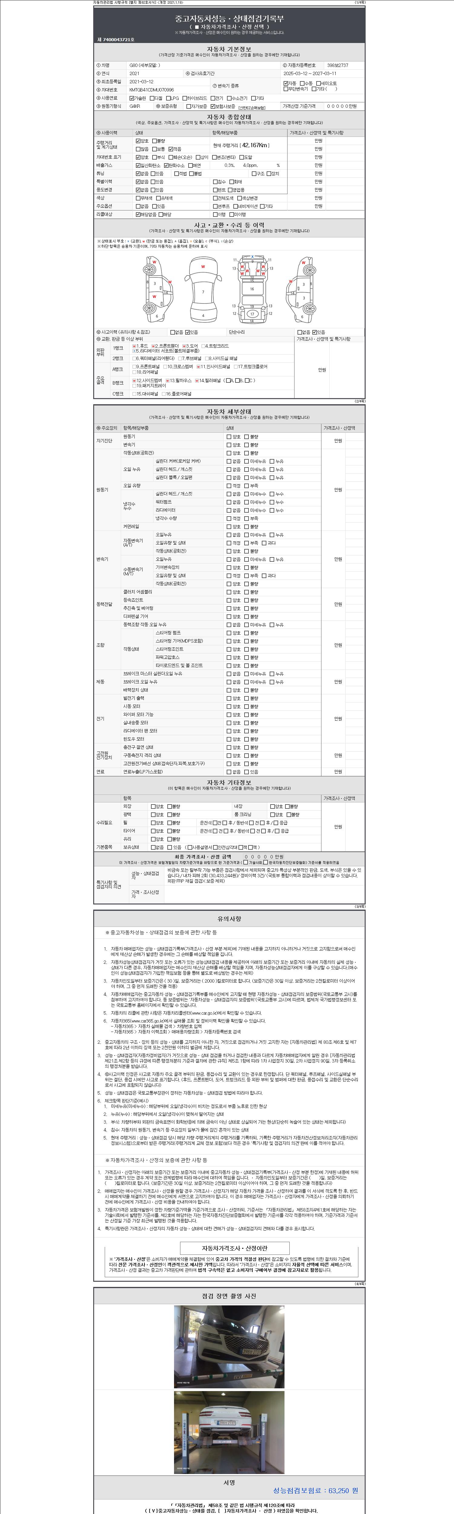 2. 차량 등록증이나 성능점검지 등을 상담자에게 요청및 확인하시고 사전에 미리 점검 하시기를 권유드립니다.