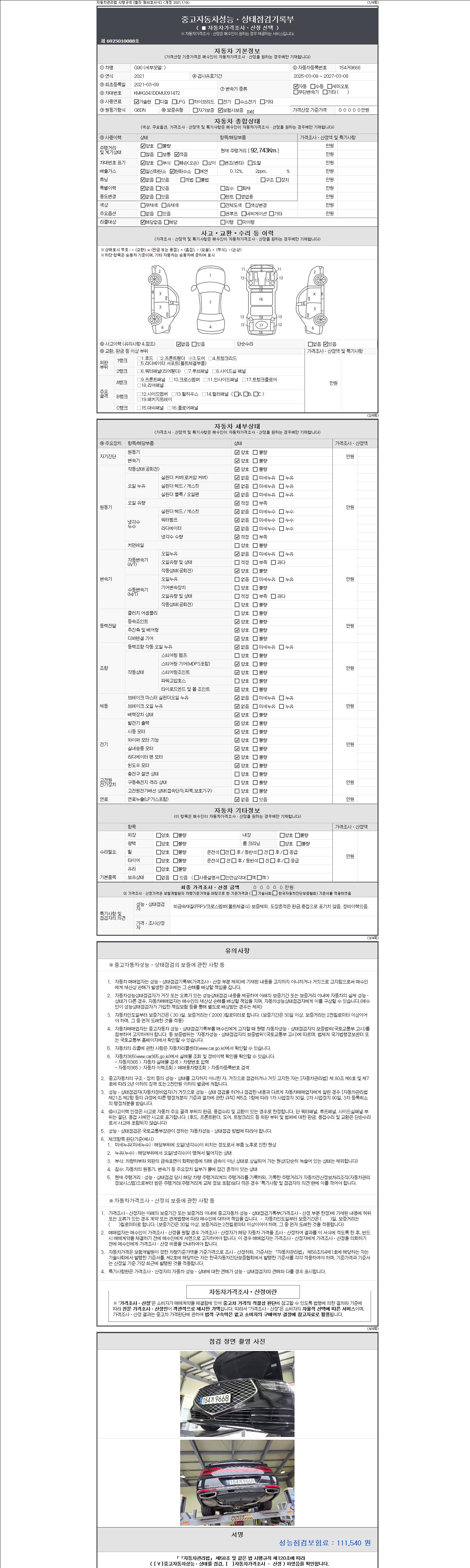 2. 차량 등록증이나 성능점검지 등을 상담자에게 요청및 확인하시고 사전에 미리 점검 하시기를 권유드립니다.