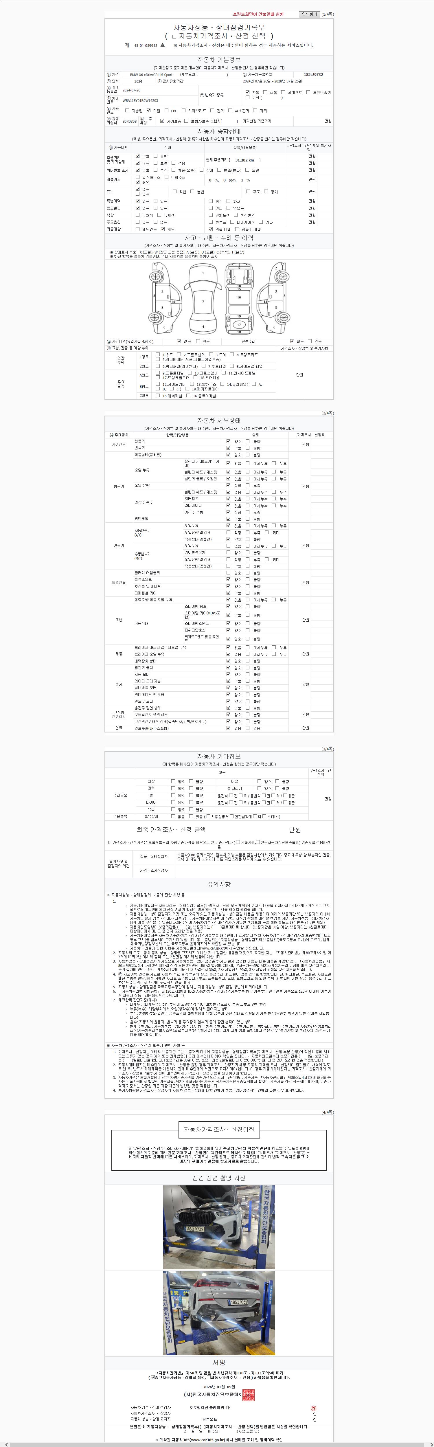 자동차관리법 시행규칙 제120조의 규정에 따라 별지 제 82호서식 《중고자동차 성능, 상태점검 기록부》를 발행한 성능, 상태점검자 및 매매자는 아래의 보증기간 또는 보증거리 이내의 중고자동차, 성능점검 기록부에 기재된 내용과 자동차의 실제 성능, 상태가 다른 경우 계약 또는 관계법령에 따라 매수인에 대하여 책임을 집니다.