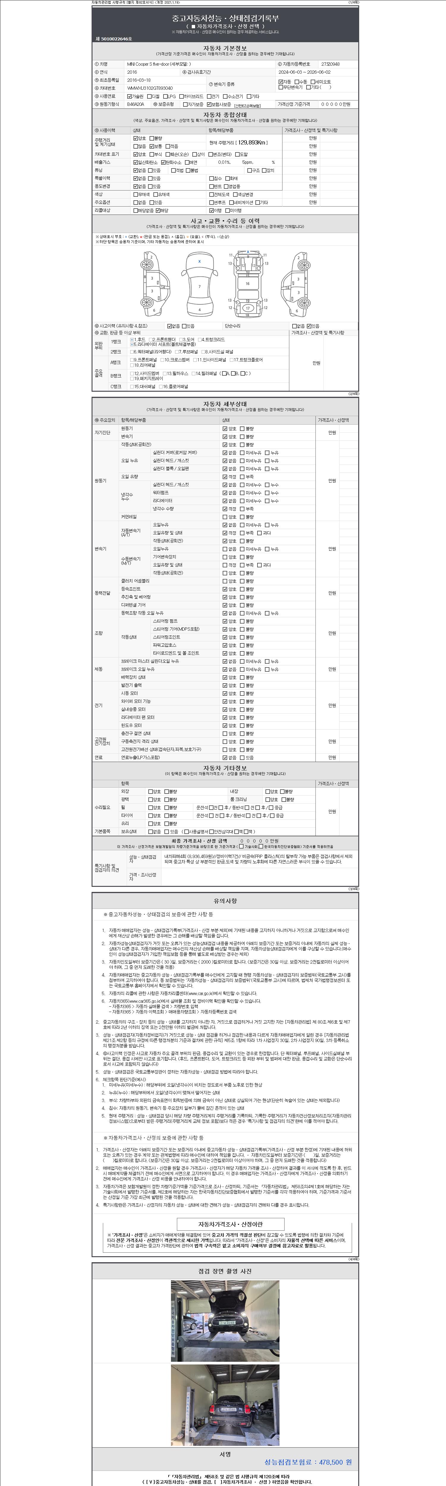 -중고자동차 매매업자를 통해 차량을 구입하실 경우 반드시 "중고자동차 성능, 상태점검 기록부"를 교뷰 받으셔야 하며, 매매업자는 반드시 의무 교부 하여야 압니다.