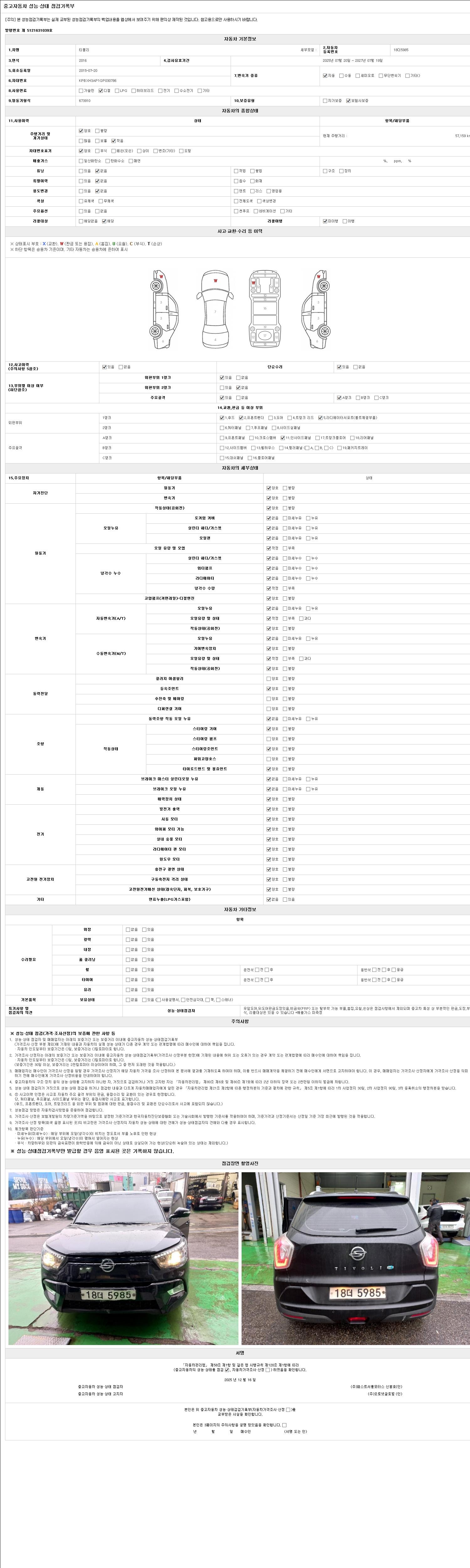 사고유무 성능기록부 참조 제시번호 제 2025041617 호