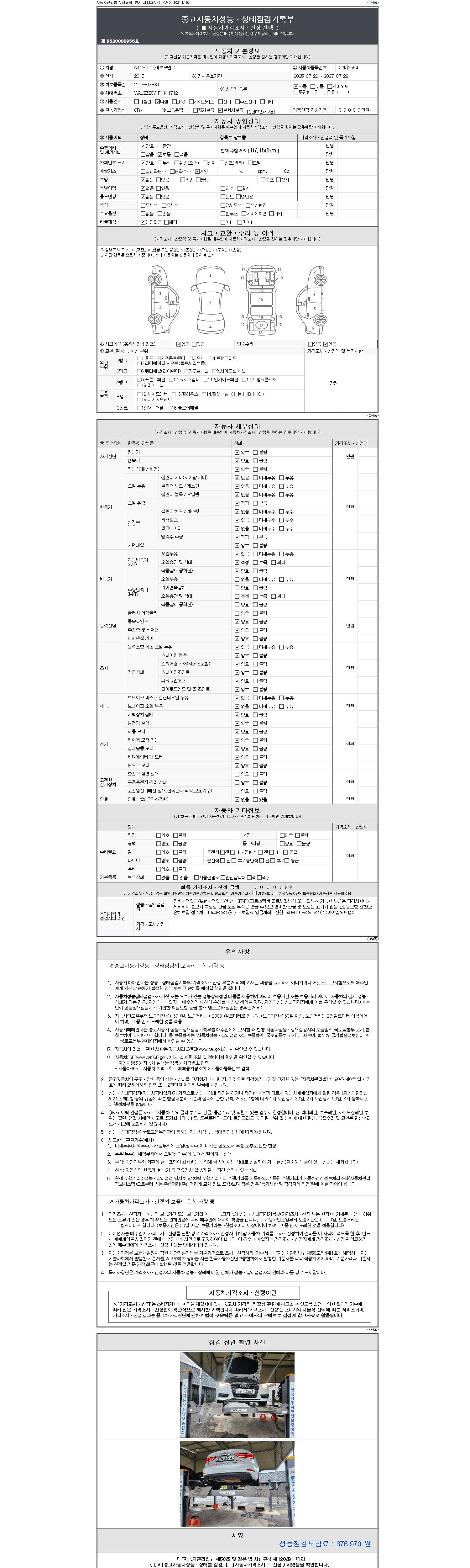 2. 차량 등록증이나 성능점검지 등을 상담자에게 요청및 확인하시고 사전에 미리 점검 하시기를 권유드립니다.