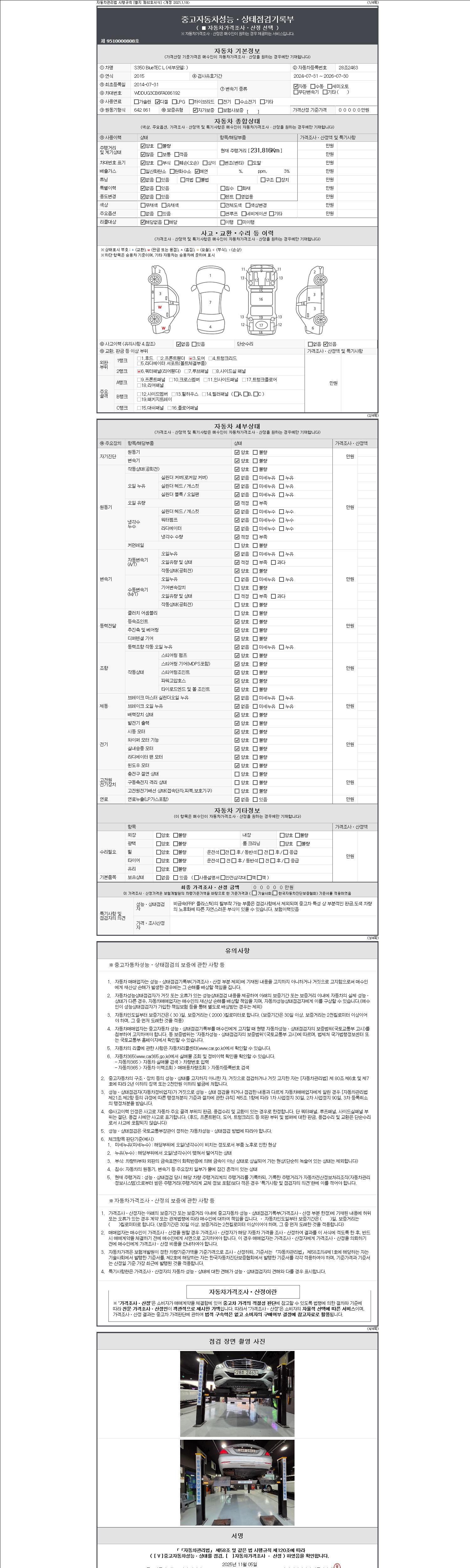 2. 차량 등록증이나 성능점검지 등을 상담자에게 요청및 확인하시고 사전에 미리 점검 하시기를 권유드립니다.