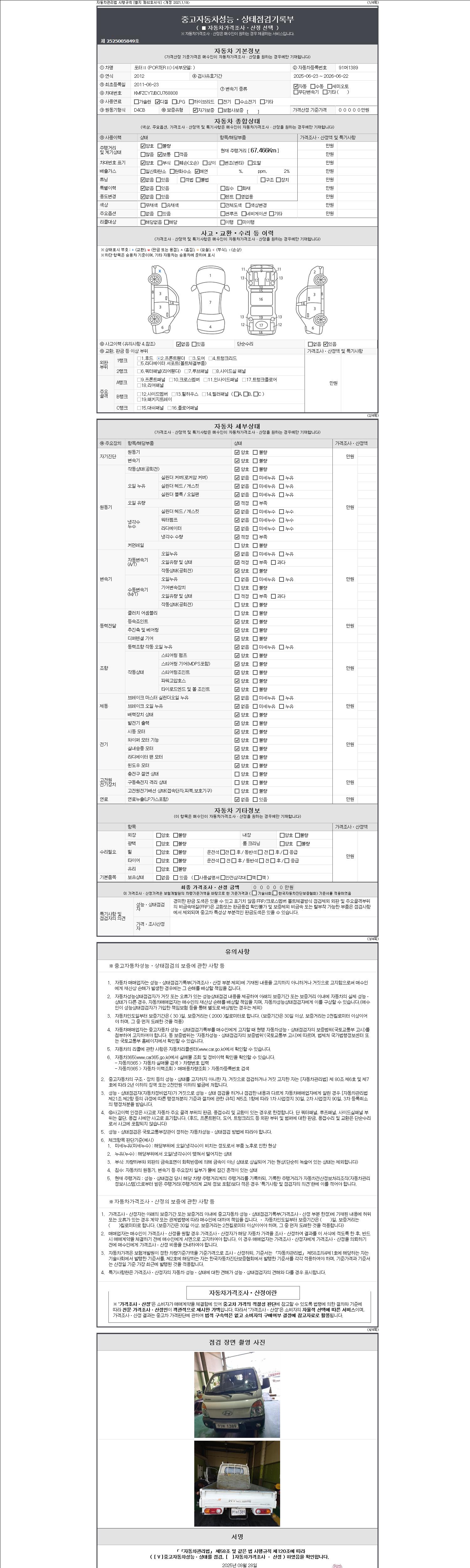 -중고자동차 매매업자를 통해 차량을 구입하실 경우 반드시 "중고자동차 성능, 상태점검 기록부"를 교뷰 받으셔야 하며, 매매업자는 반드시 의무 교부 하여야 압니다.