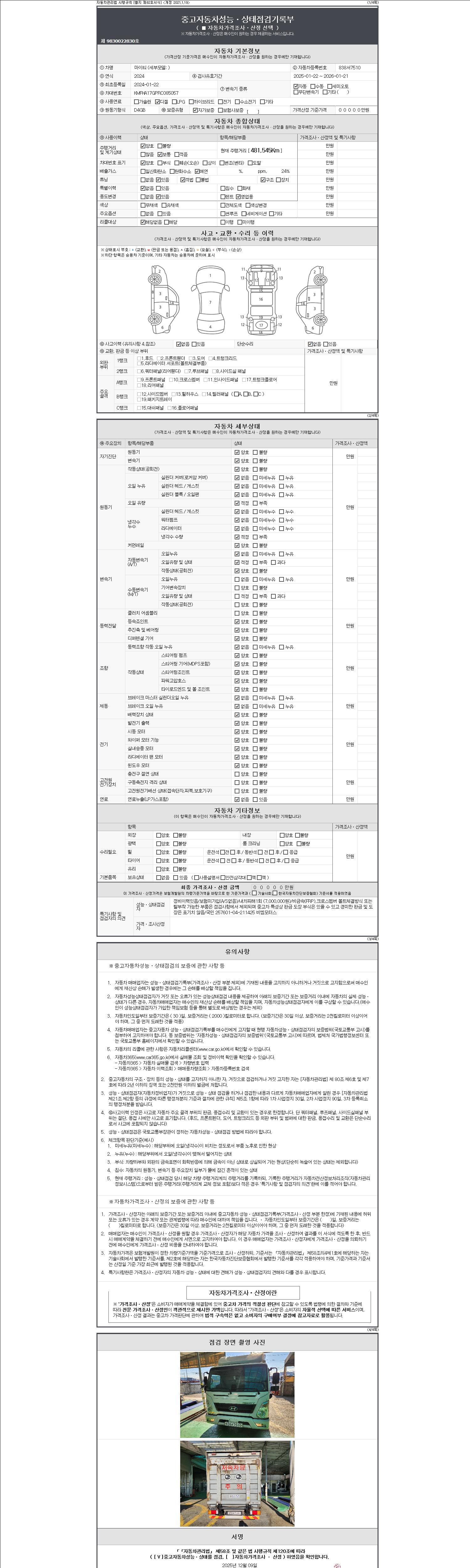 오토|경유|2024년 1월|481,545 km 838서7510| cc|흰색 |