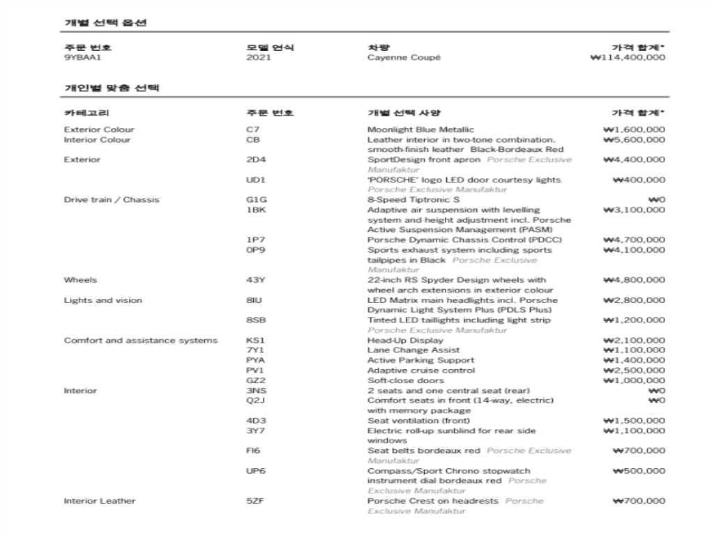 포르쉐 카이엔 카이엔(PO536) (19년~) 3.0 쿠페 |