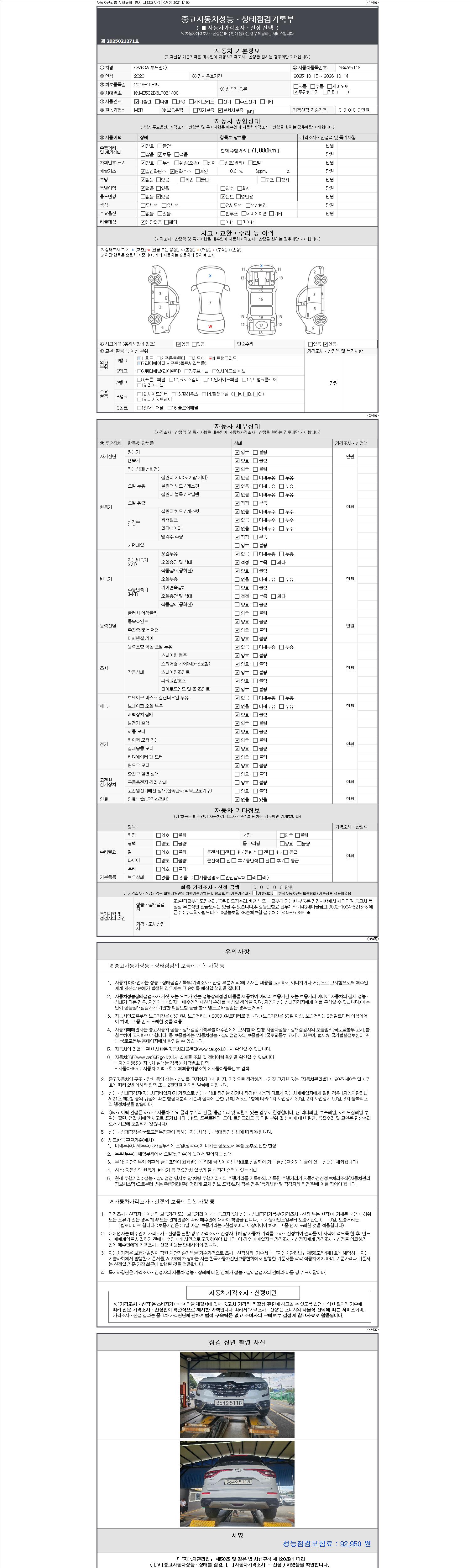 2. 차량 등록증이나 성능점검지 등을 상담자에게 요청및 확인하시고 사전에 미리 점검 하시기를 권유드립니다.