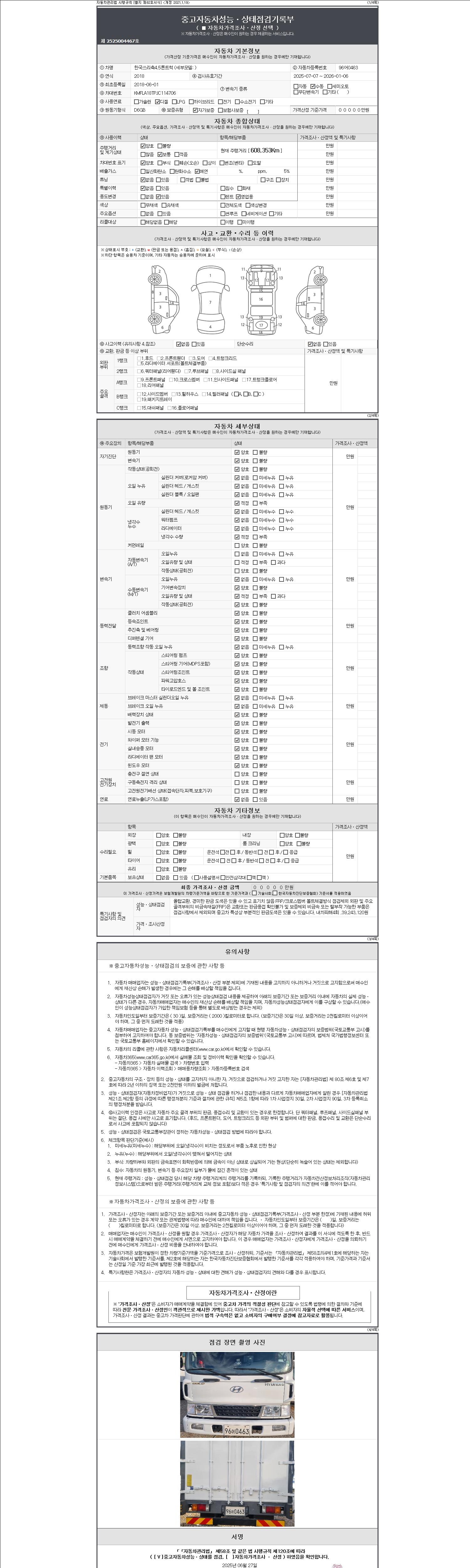 | 주행거리 | 608,353 km | 차량번호 | 96어0463 |