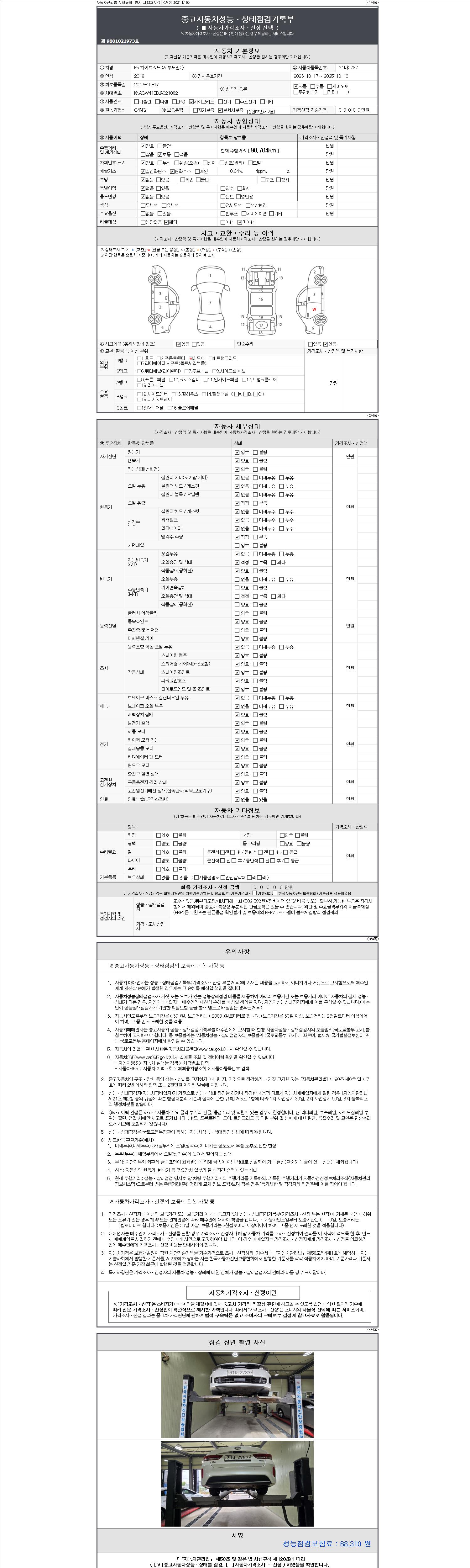 2. 차량 등록증이나 성능점검지 등을 상담자에게 요청및 확인하시고 사전에 미리 점검 하시기를 권유드립니다.