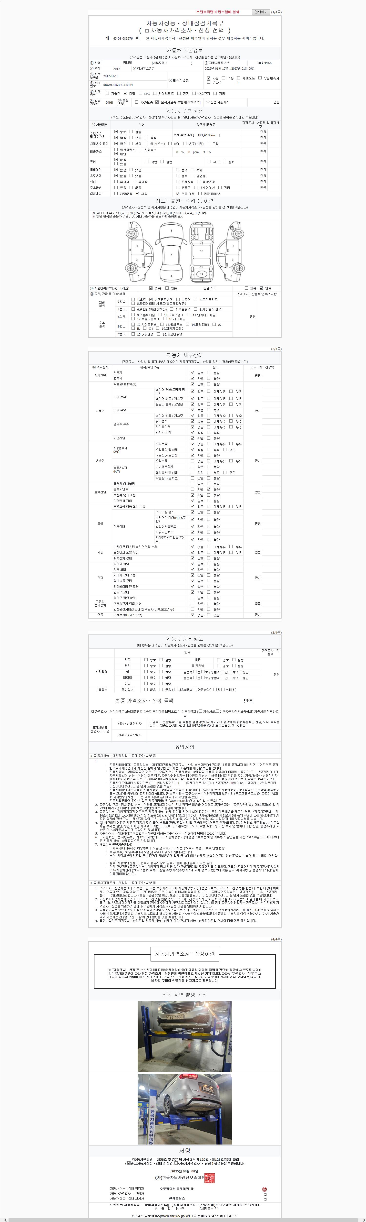 사고유무 성능기록부 참조 제시번호 제 2147483647 호
