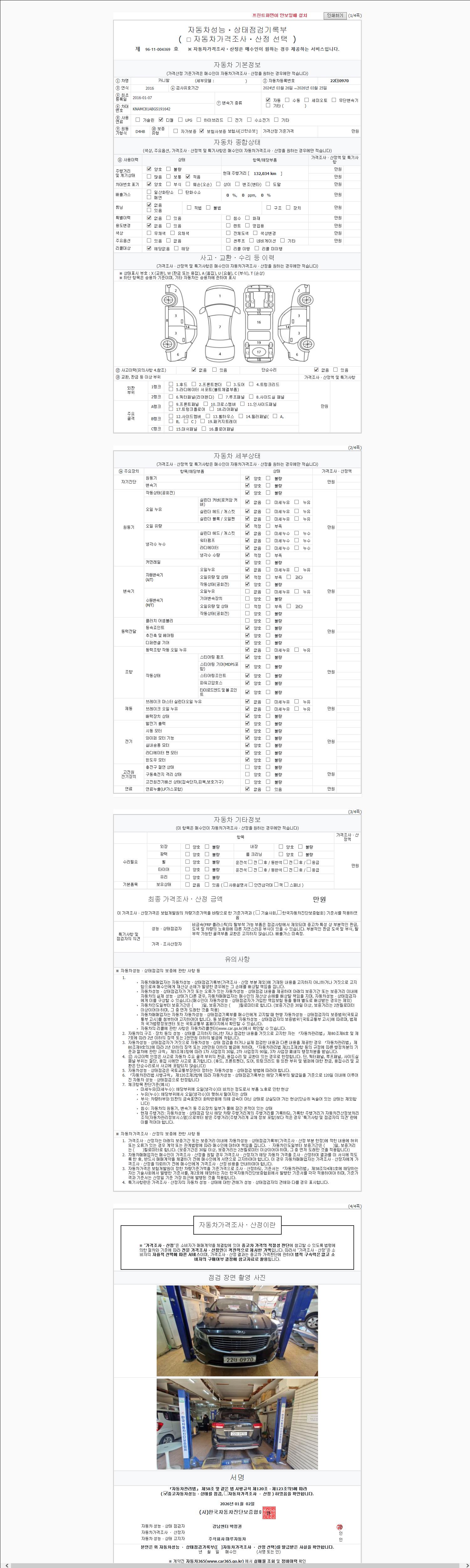 2. 차량 등록증이나 성능점검지 등을 상담자에게 요청및 확인하시고 사전에 미리 점검 하시기를 권유드립니다.