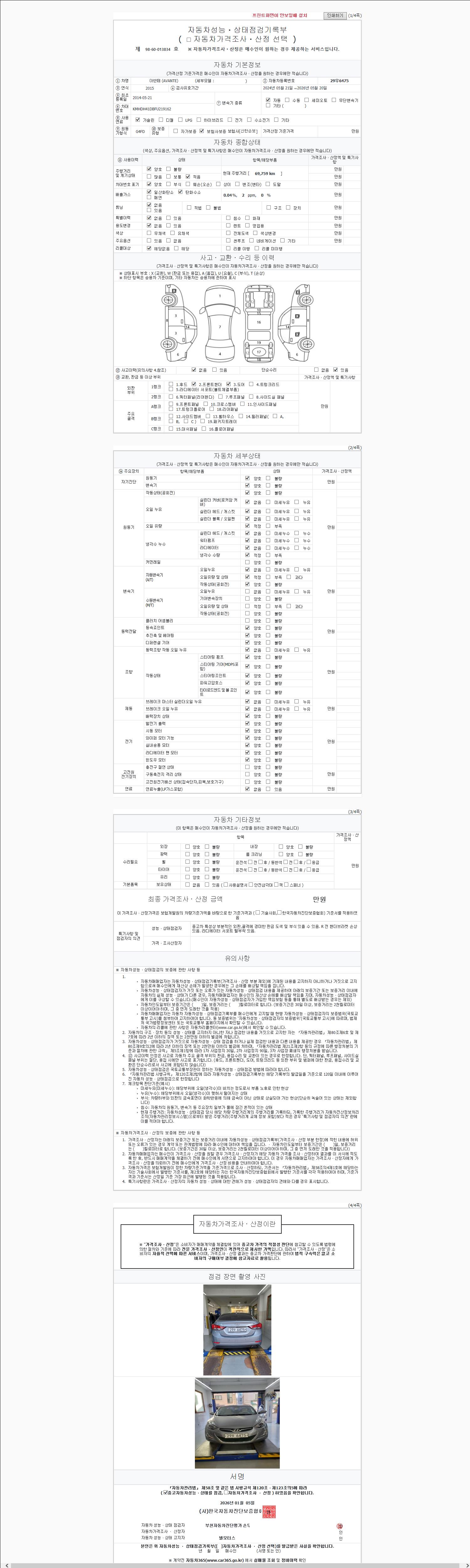 사고유무 성능기록부 참조 제시번호 제 2026003281 호