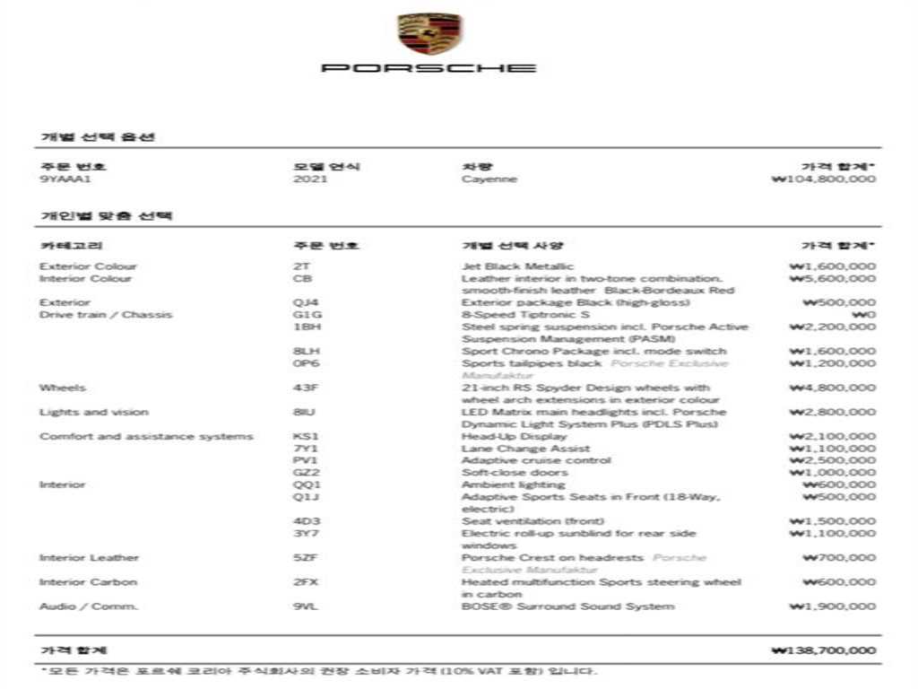 포르쉐 카이엔 카이엔(PO536) (19년~) 3.0 |