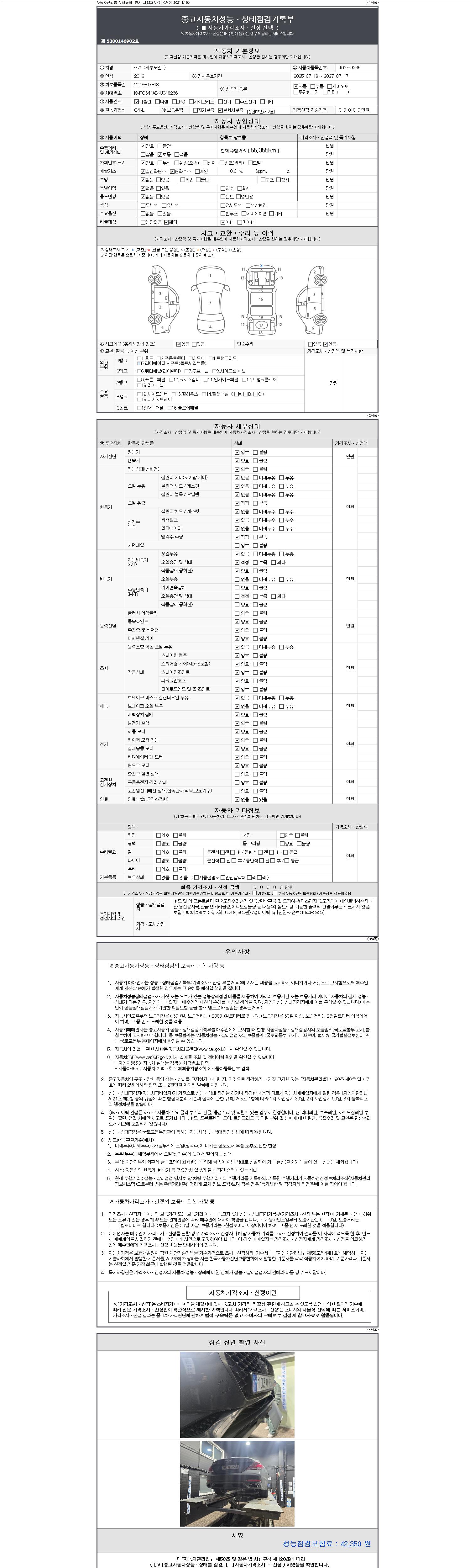 2. 차량 등록증이나 성능점검지 등을 상담자에게 요청및 확인하시고 사전에 미리 점검 하시기를 권유드립니다.