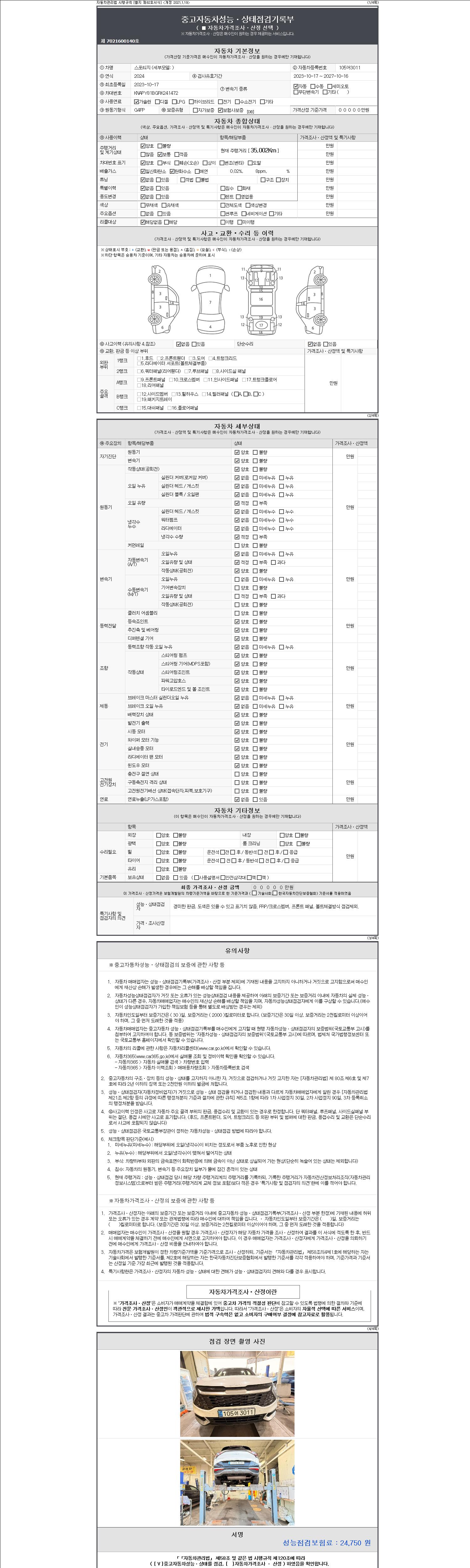 사고유무 성능기록부 참조 제시번호 제 2147483647 호