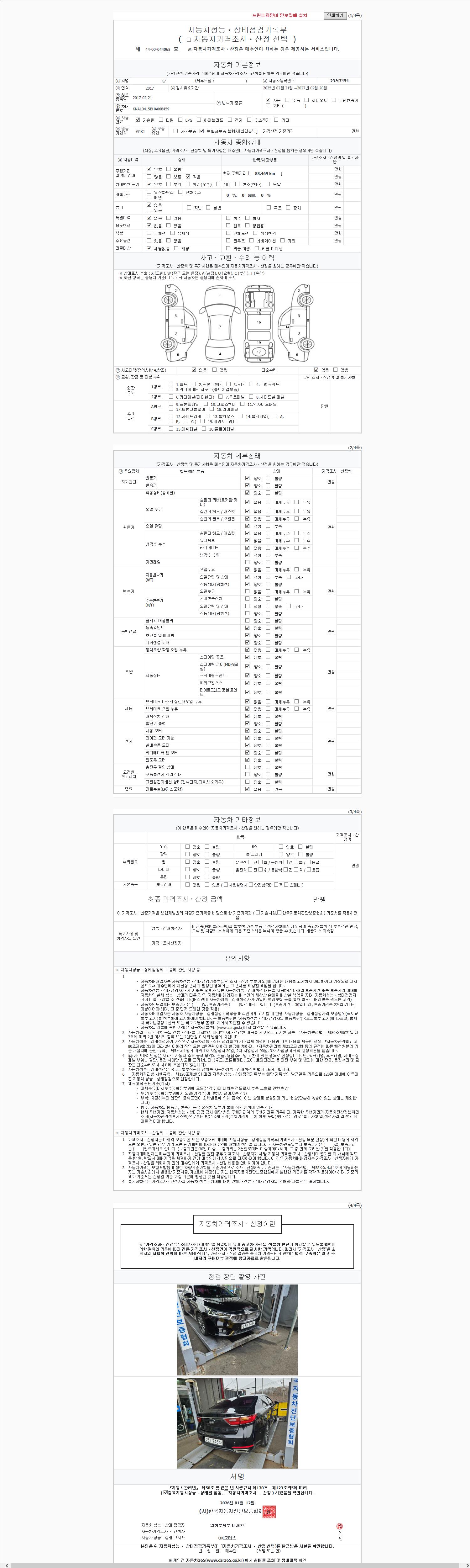 사고유무 성능기록부 참조 제시번호 제 2026005465 호