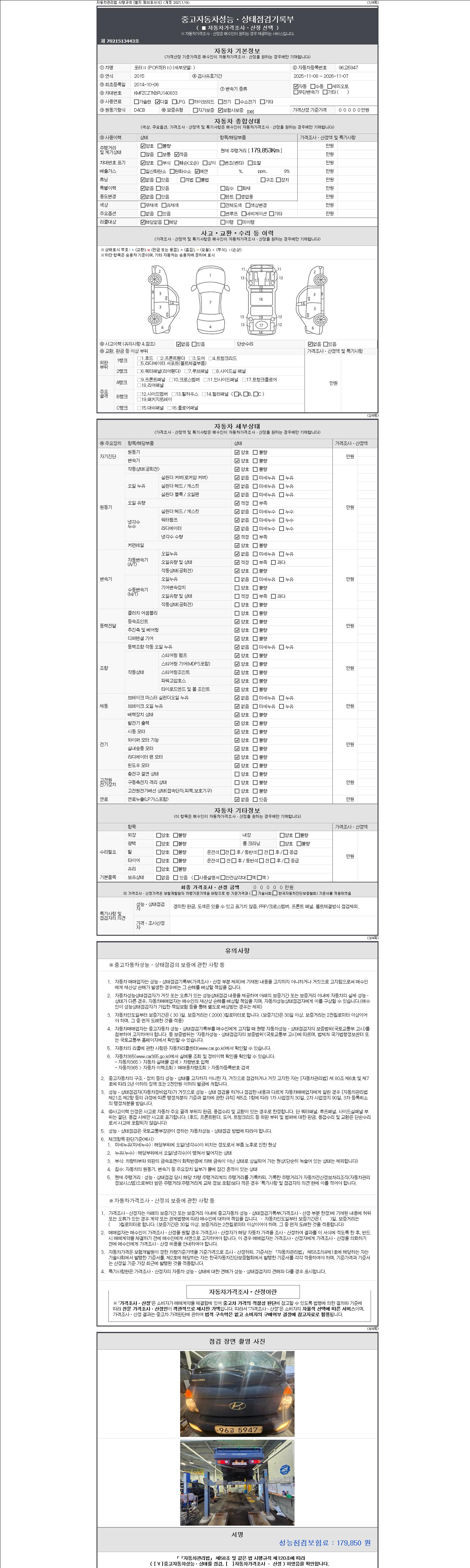 | 주행거리 | 179,853 km | 차량번호 | 96고5947 |
