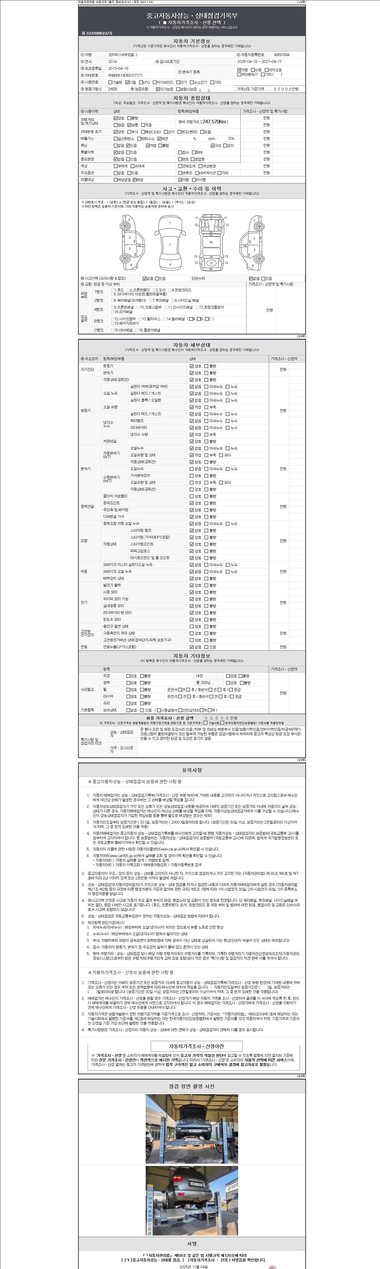 2. 차량 등록증이나 성능점검지 등을 상담자에게 요청및 확인하시고 사전에 미리 점검 하시기를 권유드립니다.