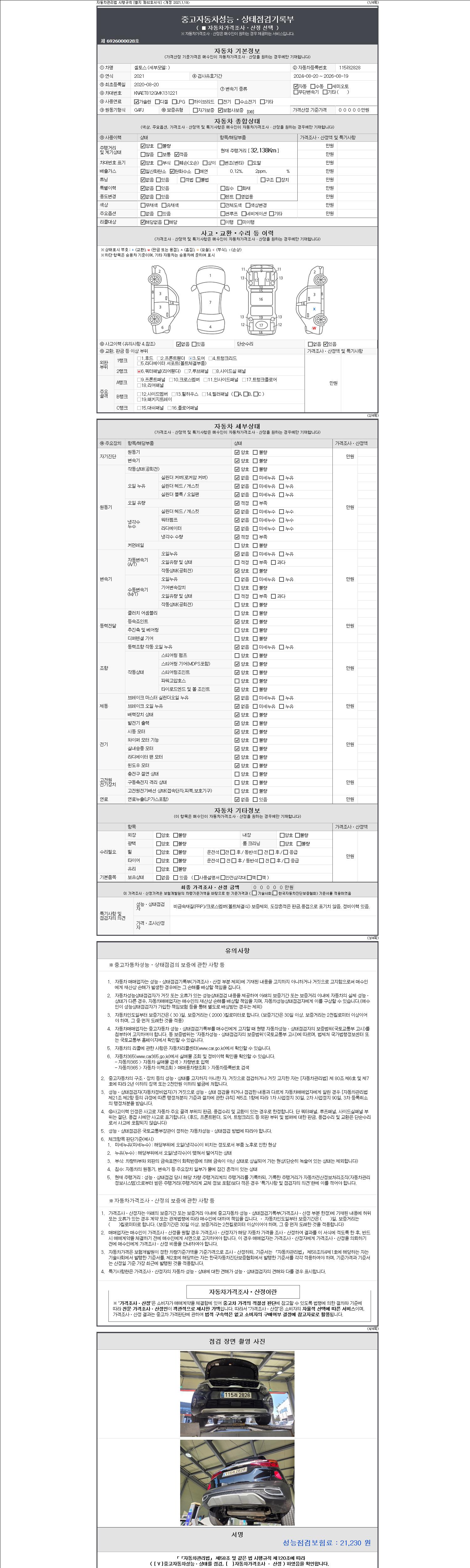 | 주행거리 | 32,138 km | 차량번호 | 115러2828 |