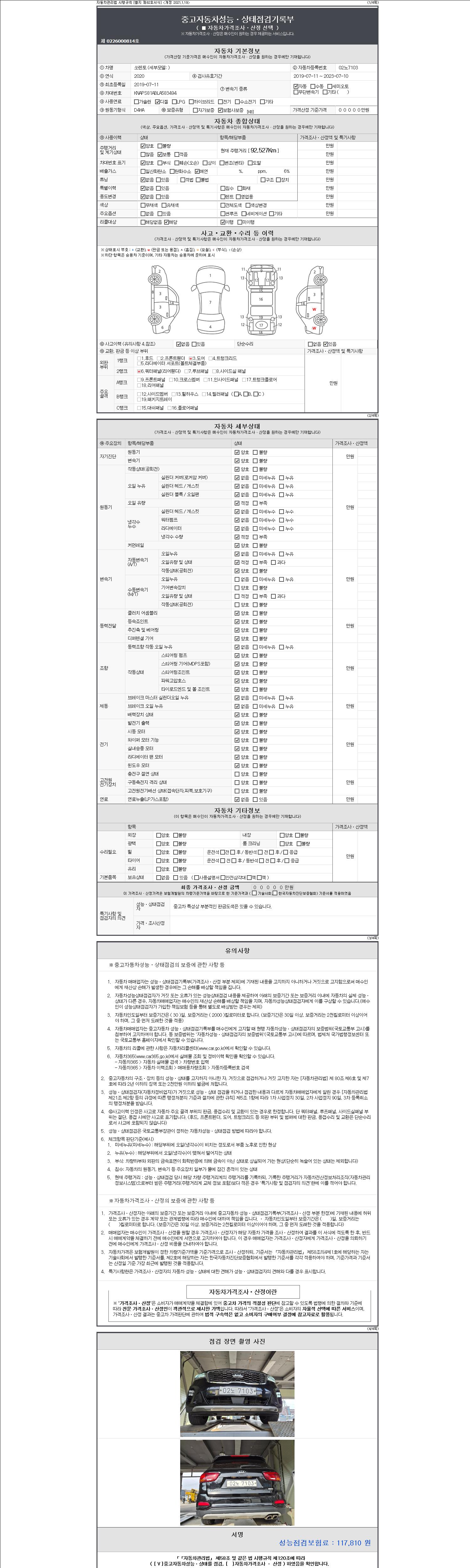 2. 차량 등록증이나 성능점검지 등을 상담자에게 요청및 확인하시고 사전에 미리 점검 하시기를 권유드립니다.