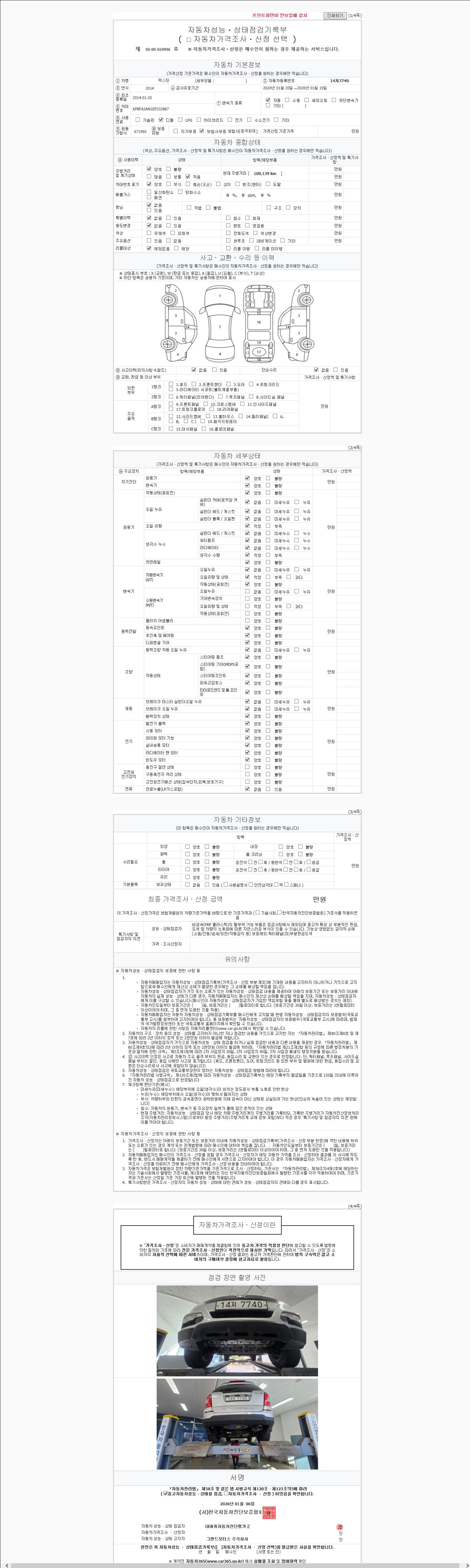 사고유무 성능기록부 참조 제시번호 제 2147483647 호