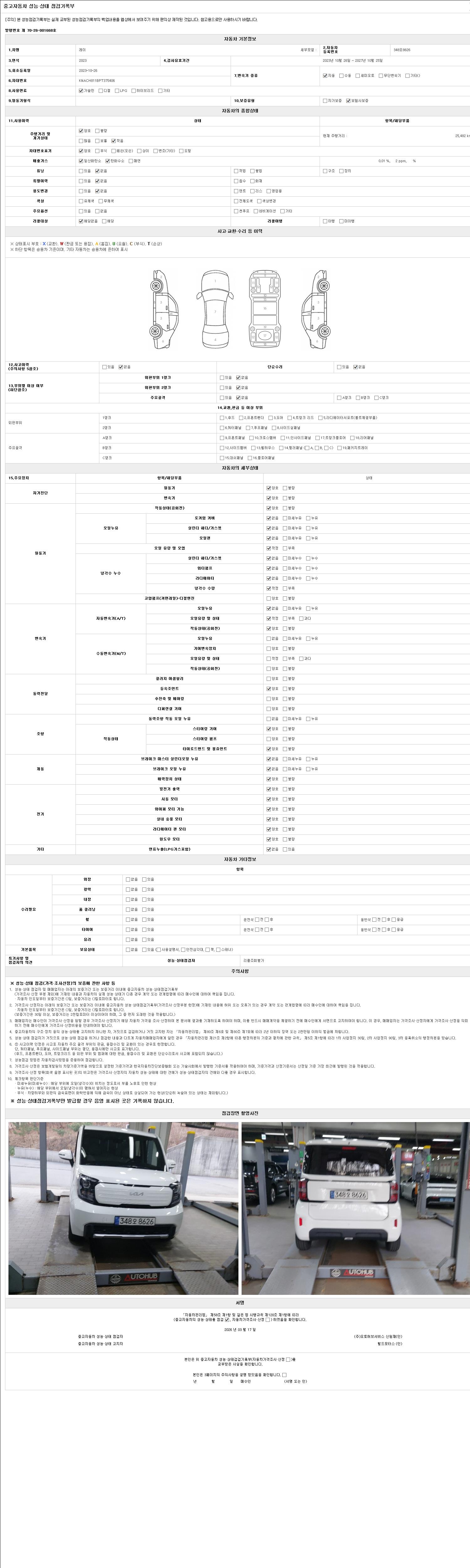 - 2. 차량 등록증이나 성능점검지 등을 상담자에게 요청및 확인하시고 사전에 미리 점검 하시기를 권유드립니다.