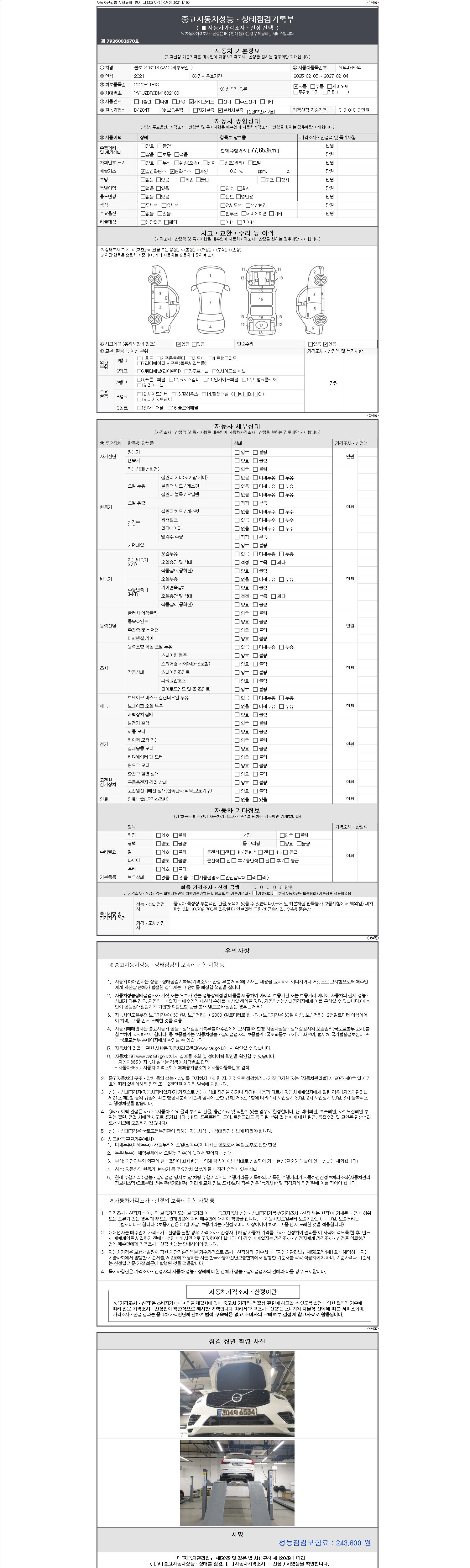 | 주행거리 | 77,653 km | 차량번호 | 304마6534 | 사고유무 | 성능기록부 참조 | 제시번호 | 제 2147483647 호 |