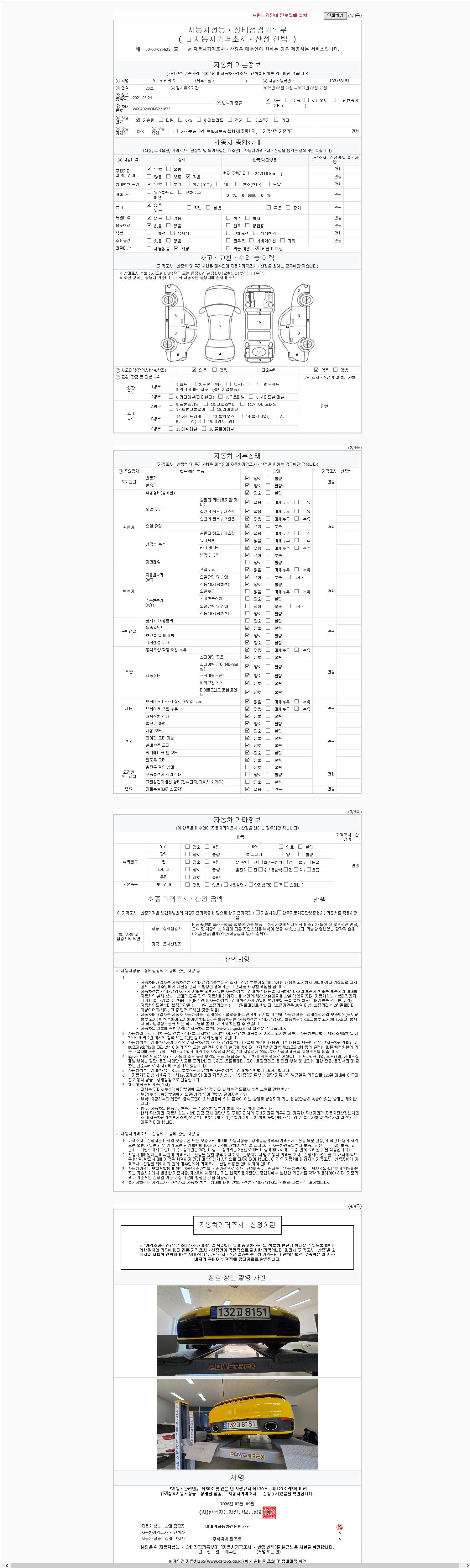 | 주행거리 | 24,318 km | 차량번호 | 132고8151 | 사고유무 | 성능기록부 참조 | 제시번호 | 제 2147483647 호 |