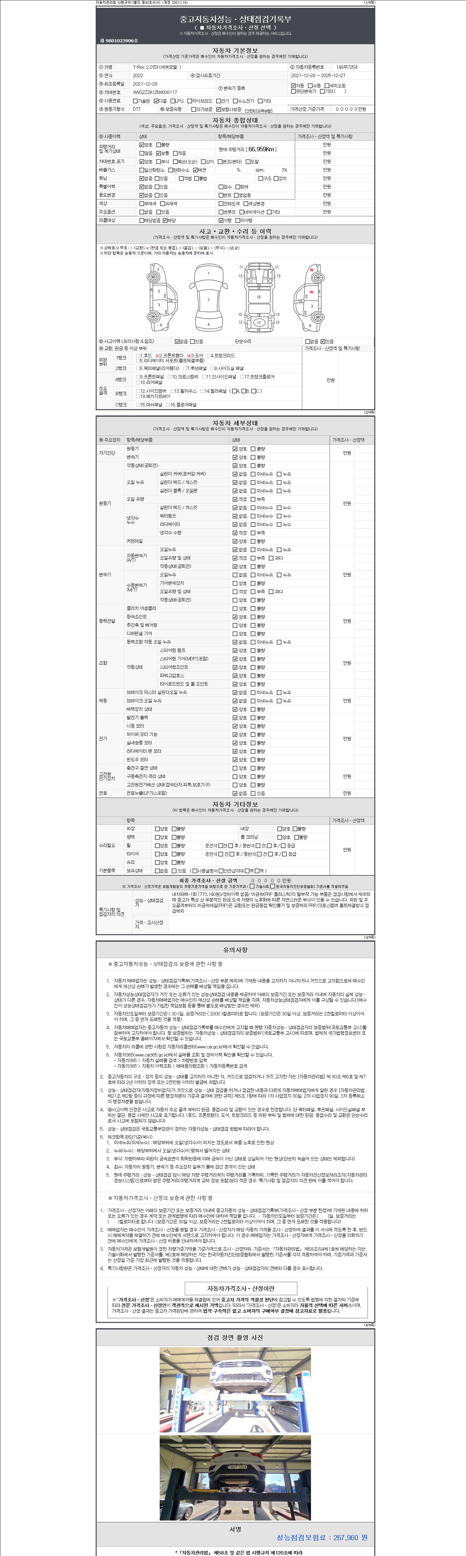 -중고자동차 매매업자를 통해 차량을 구입하실 경우 반드시 "중고자동차 성능, 상태점검 기록부"를 교뷰 받으셔야 하며, 매매업자는 반드시 의무 교부 하여야 압니다.