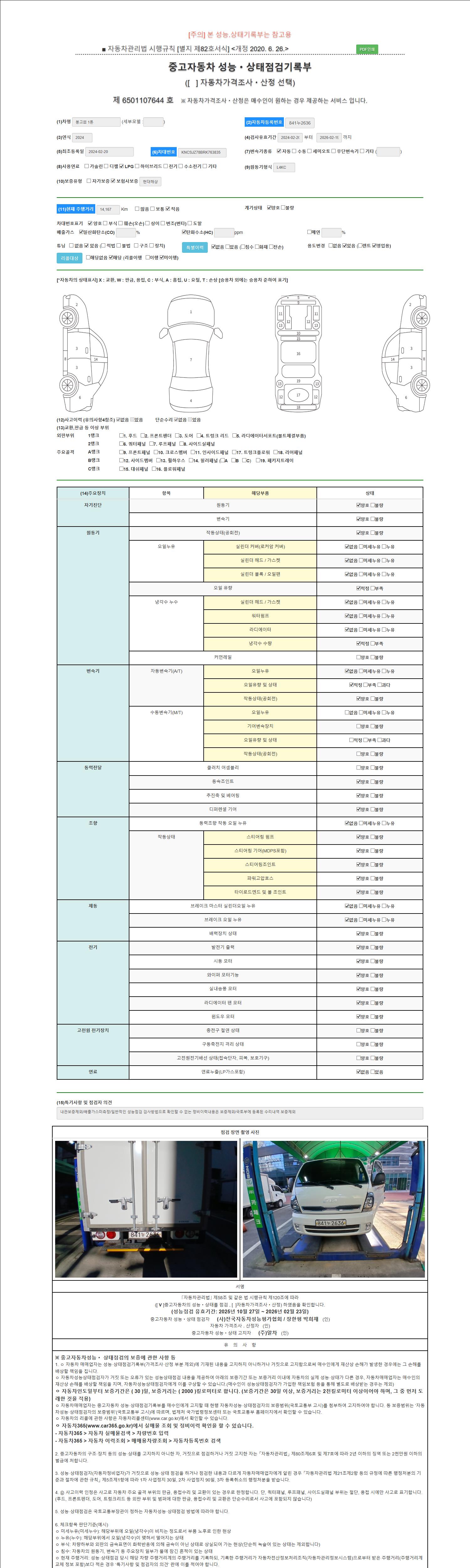 2. 차량 등록증이나 성능점검지 등을 상담자에게 요청및 확인하시고 사전에 미리 점검 하시기를 권유드립니다.
