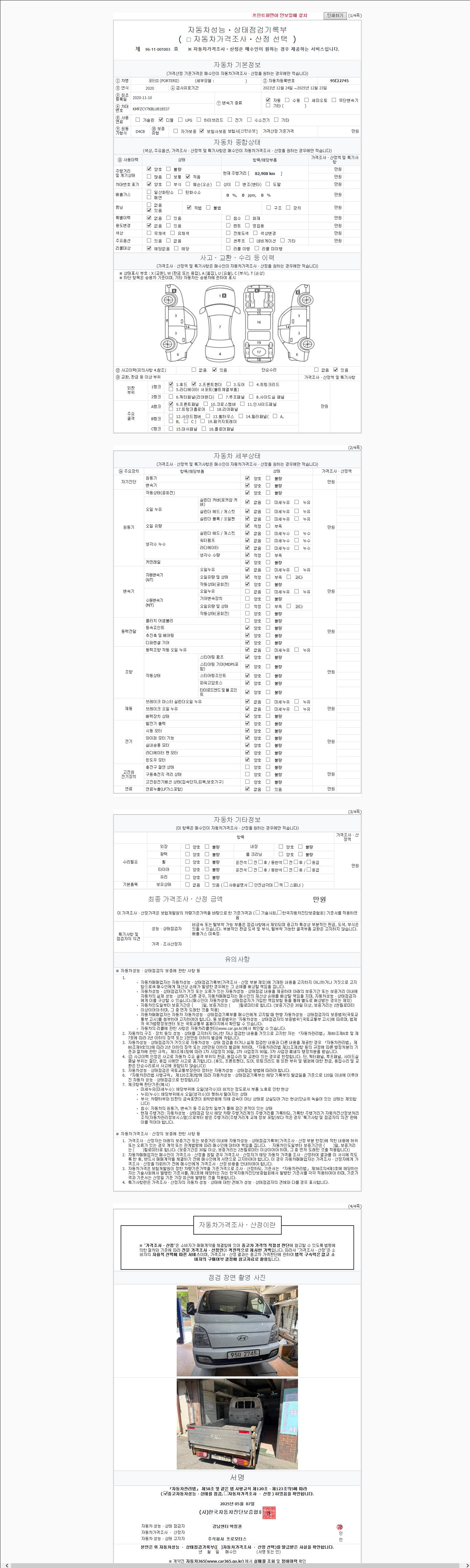 | 주행거리 | 82,908 km | 차량번호 | 95다2745 |