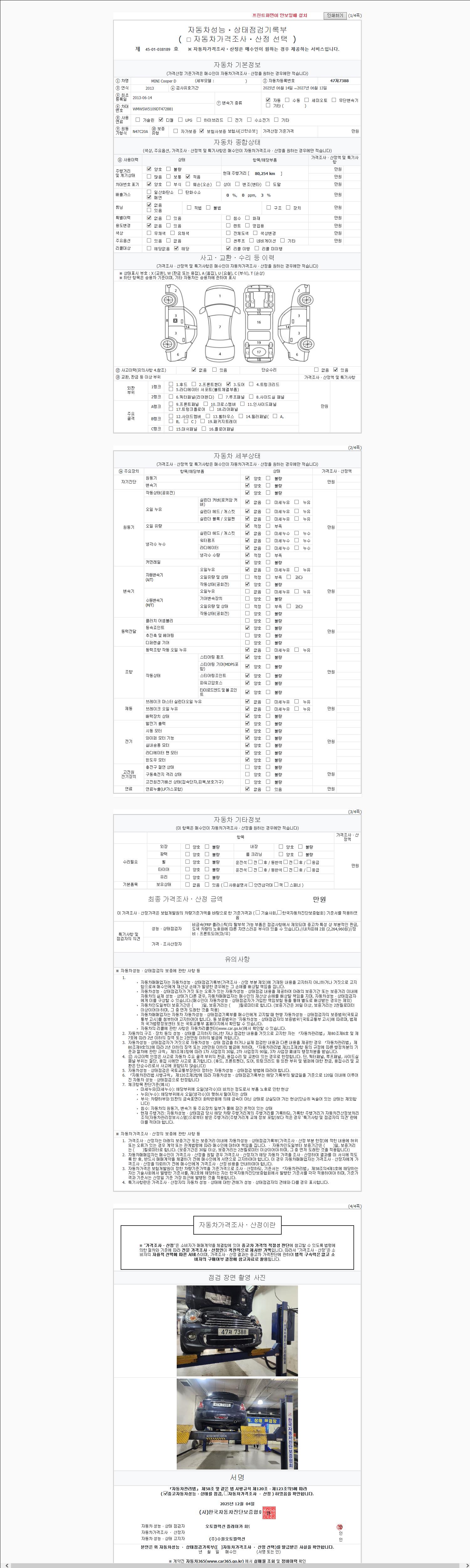 2. 차량 등록증이나 성능점검지 등을 상담자에게 요청및 확인하시고 사전에 미리 점검 하시기를 권유드립니다.