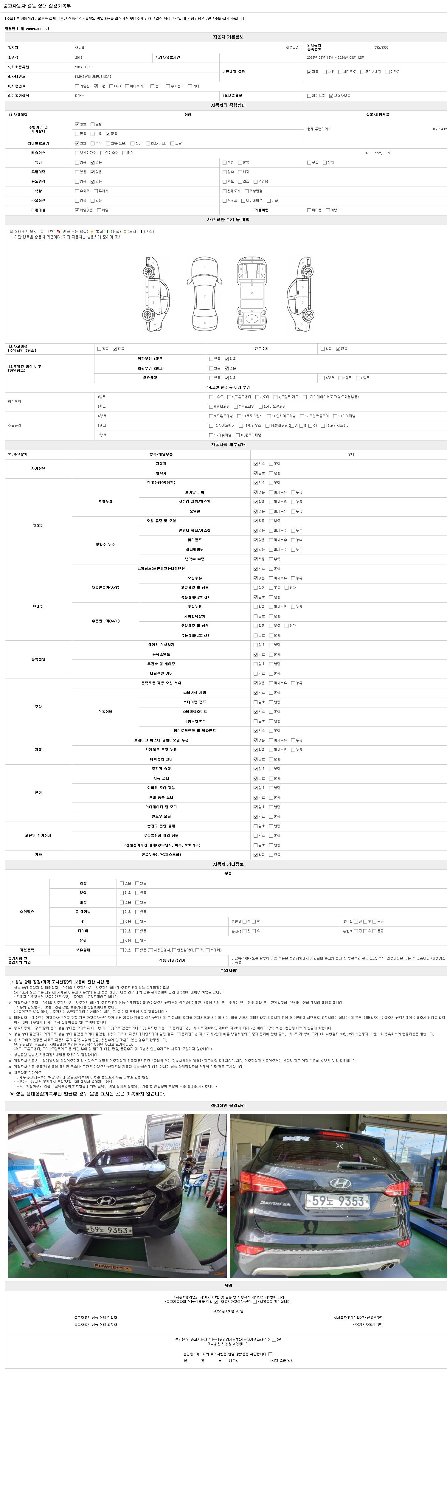 사고유무 성능기록부 참조 제시번호 제 2022037269 호