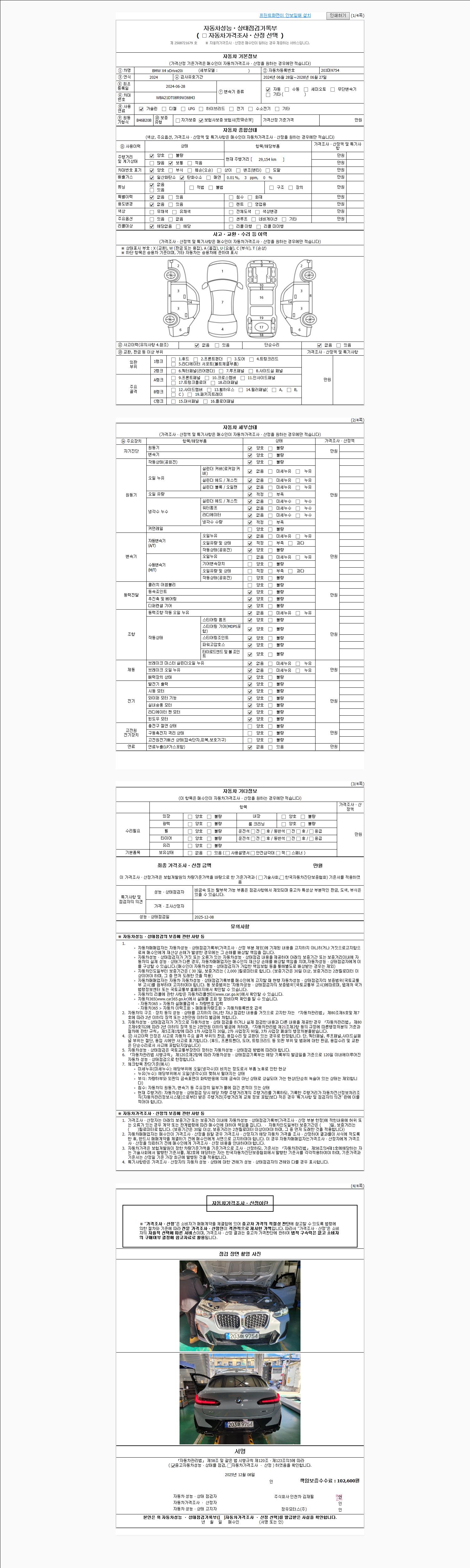 사고유무 성능기록부 참조 제시번호 제 2025068411 호