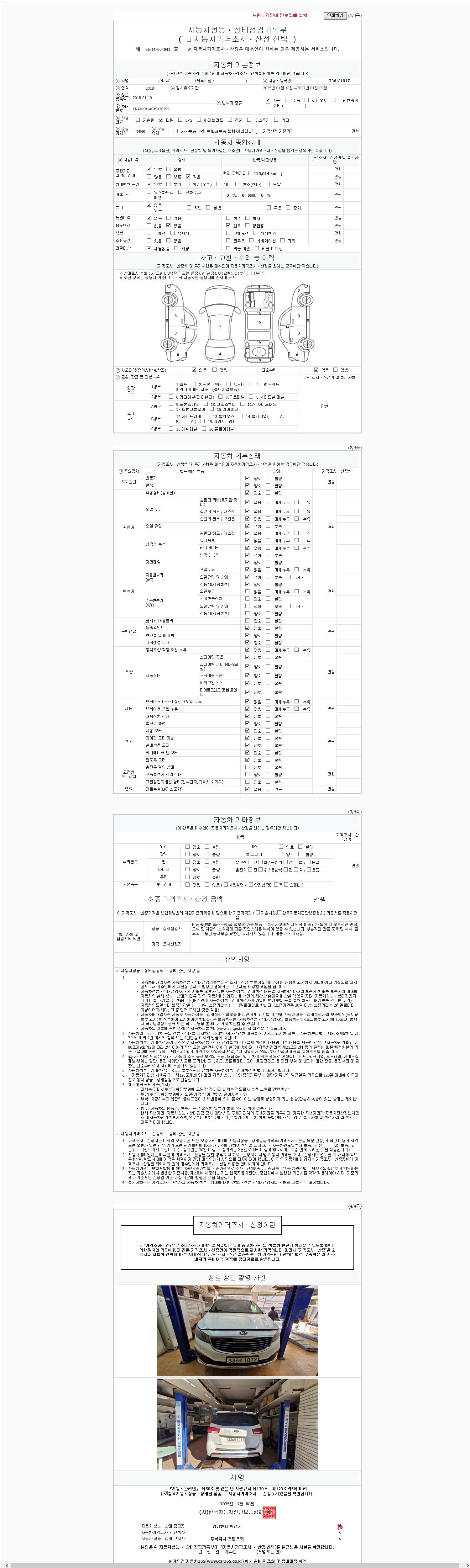 사고유무 성능기록부 참조 제시번호 제 2025166102 호