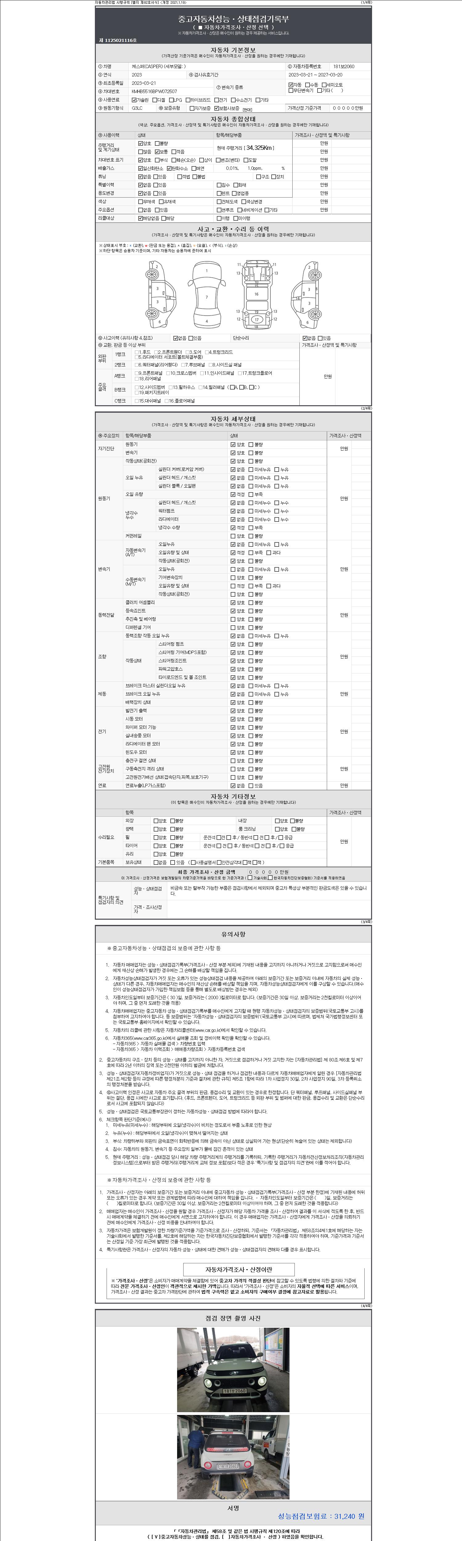 | 주행거리 | 34,325 km | 차량번호 | 181보2060 | 사고유무 | 성능기록부 참조 | 제시번호 | 제 2147483647 호 |