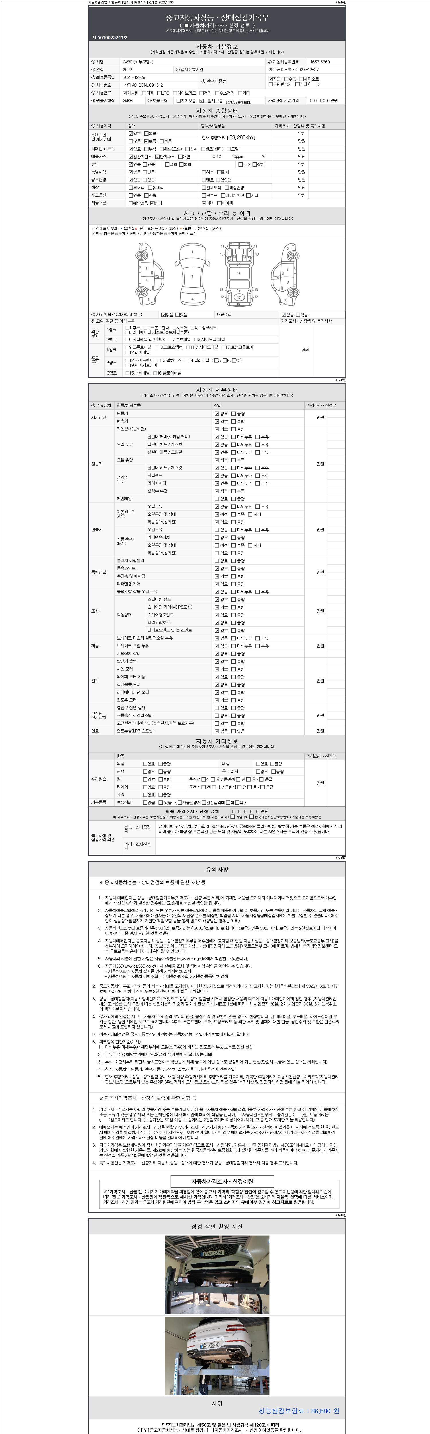 | 주행거리 | 69,290 km | 차량번호 | 165가6660 | 사고유무 | 성능기록부 참조 | 제시번호 | 제 2147483647 호 |
